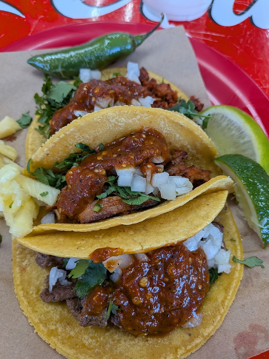 The tacos and quesadillas are so good! From the tacos de Asada, alpastor, chorizo, & pollo. To the quesadillas as well! My husband had the suadero and also loved it. The music was also a vibe!