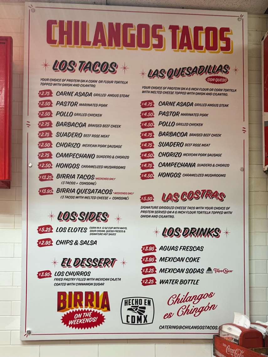 Chilangos Tacos - Dallas Menu